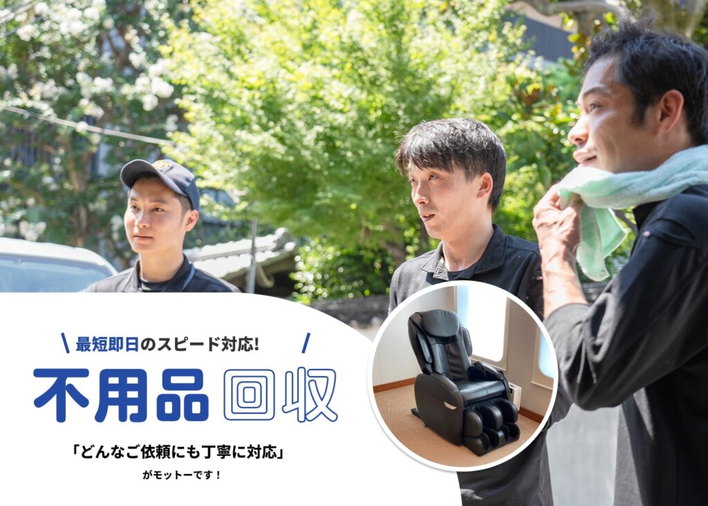 「京都市では粗大ごみに出せる?」「持ち込みなら安い?」「不用品回収業者だといくら?」など、疑問が尽きないのがマッサージチェア処分の難しさ。